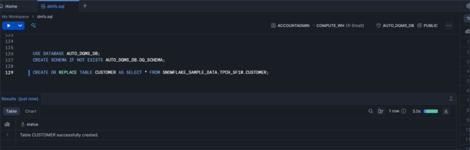 This setup ensures all tables are ready for automated data quality checks, making it easy to run Streamlit-based visualizations and AI-powered DMFs without touching the original shared datasets.