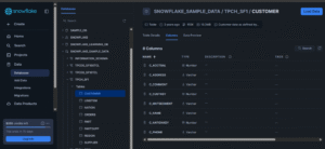 In this project, Snowflake was connected using a public dataset: Database: SNOWFLAKE_SAMPLE_DATA Schema: TPCH_SF1 Table: CUSTOMER — this table was used throughout the project for all demonstrations.