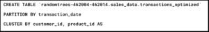 This creates 1 million rows without partitioning or clustering. STEP 2: Create Partitioned + Clustered Table