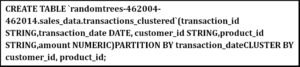 Real-Time Use Case: How partition and clustering works on tables as a performance tuning technique Now I would like to create two tables with and without partition and see when query the tables how much cost and time BigQuery will take likewise cluster also STEP 1: Create Unpartitioned, Unclustered Table